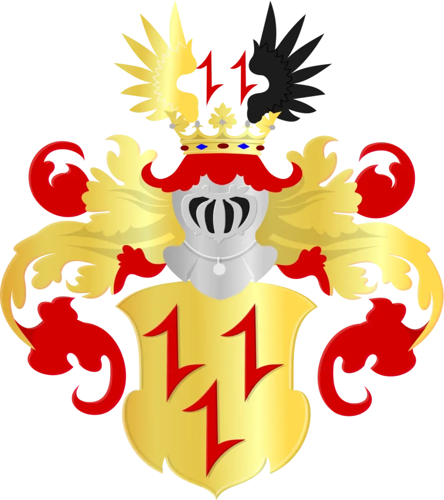 Le blason reconnu au début du XIXe siècle par l’Association généalogique allemande porte la couronne comtale (9 perles).